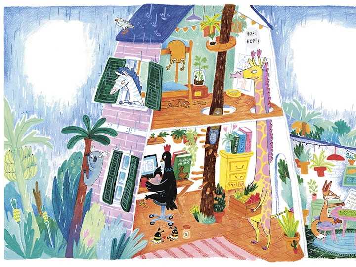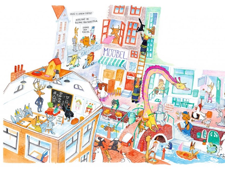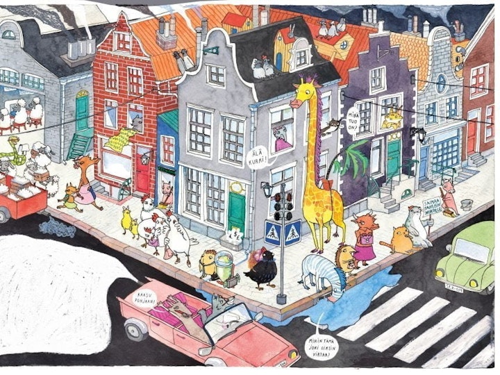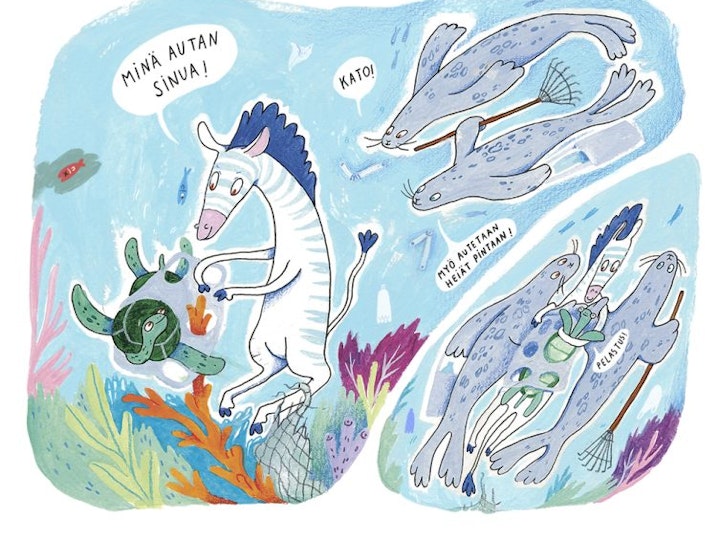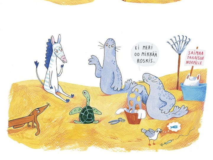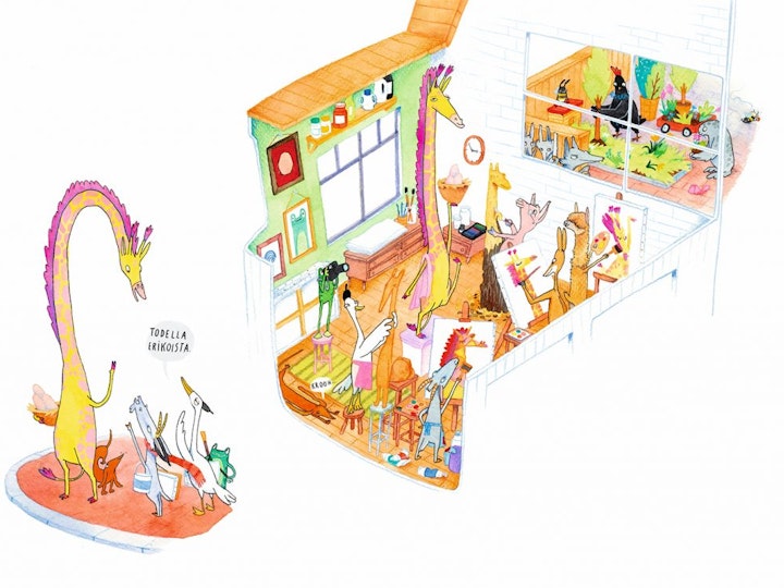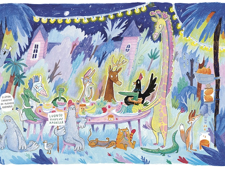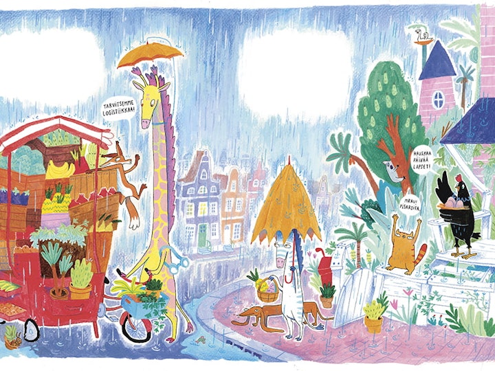 The Jungle Crew is the first children's book series that I have written and illustrated. It includes five books. The story's themes address environmental refugees, immigration, and diversity. The illustrations are created by painting and drawing with acrylics, gouache, colored pencils, and markers on paper. The original publishing is made Otava, Finland.